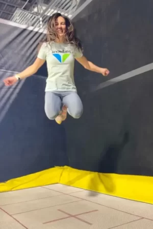 Got there at 6:30 pm—half hour before “adult night” started. When I told the front desk person that It’s my first time and I’d like an orientation, he asked me to sign the waiver and gave a wrist band with a weird look. As I walked in, I realized I was even older than the moms around. Suddenly, I felt a little creepy. I grabbed a high chair, sat facing the trampolines. Seven trampolines filled with tiny humans—some barely taller than my waist—flipping, jumping, rolling.